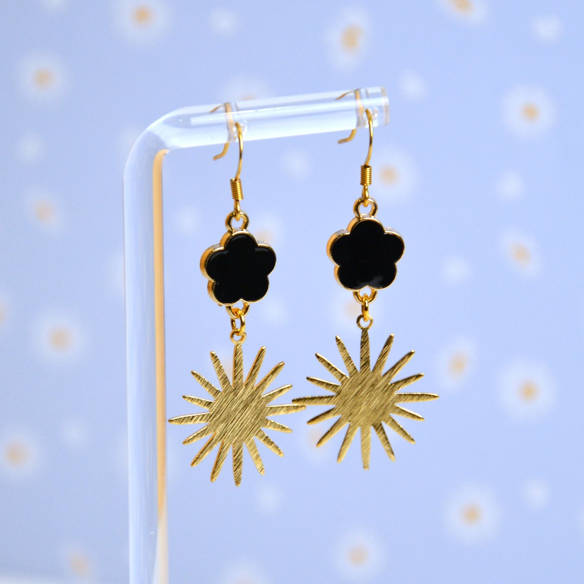 Ajoutez une touche de gaieté à votre look avec ces boucles d'oreilles en acier inoxydable. Leur design associe une fleur émaillée délicate à un soleil doré éclatant, parfait pour illuminer vos journées avec légèreté et charme. Un accessoire joyeux qui capte tous les regards !