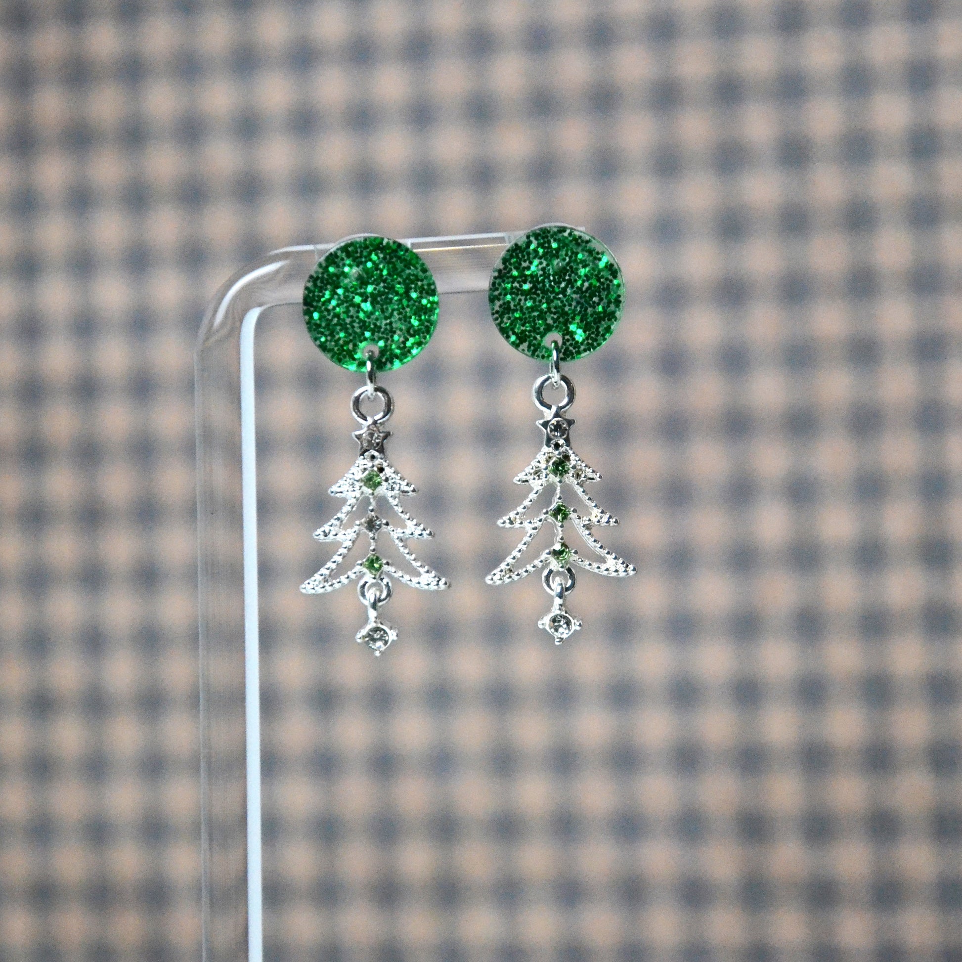 Apportez une touche scintillante à vos looks de fêtes avec ces boucles d'oreilles élégantes en forme de sapin de Noël.