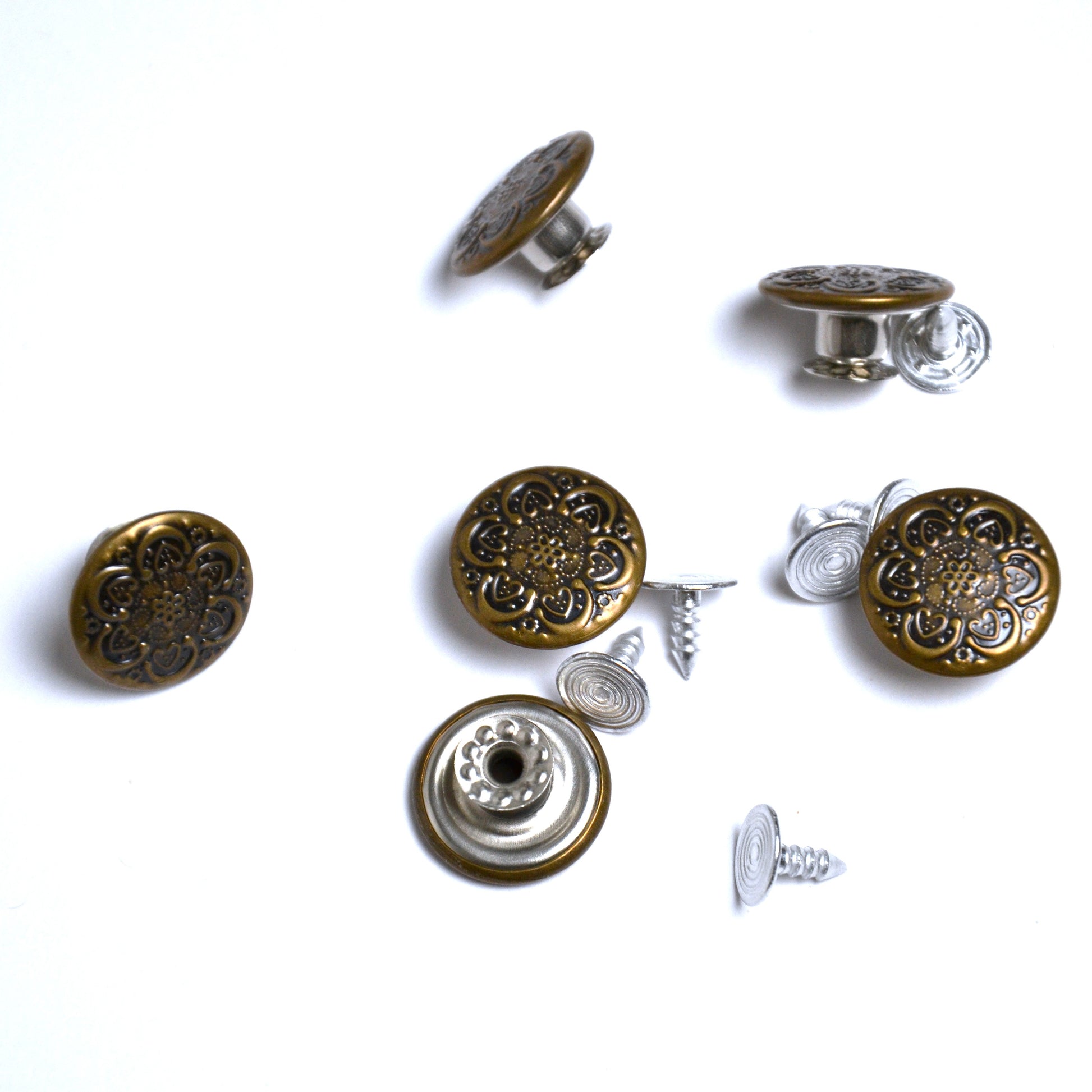 Kit de 6 Boutons de jeans bronze à FRAPPER aux motifs Arabesques accompagnés de 6 clous.