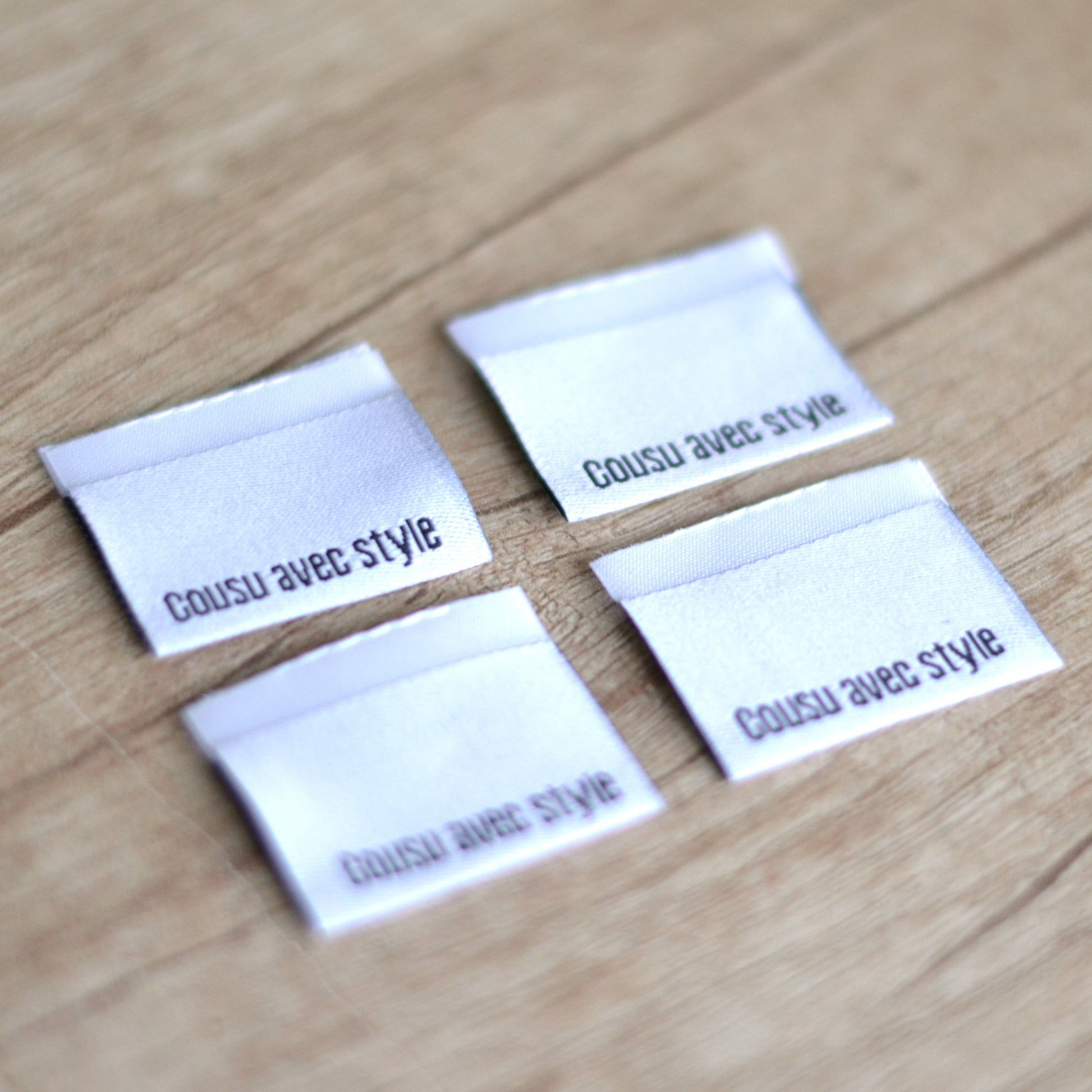 Ajoutez une touche de finition élégante et personnalisée à vos créations avec l'étiquette tissée "Cousu avec style". Son format discret (30 mm x 20 mm) en fait le détail parfait pour sublimer vos pièces cousues main.
