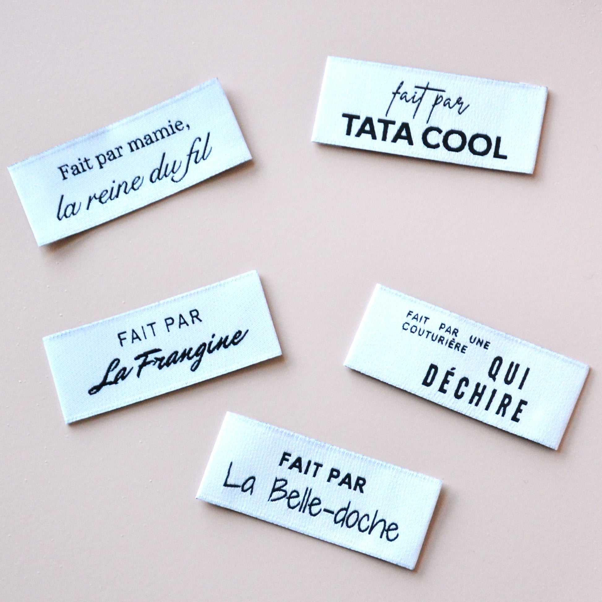 Ce kit rassemble 5 étiquettes tissées pleines de personnalité pour mettre en valeur vos créations couture… et faire sourire celles et ceux qui les porteront 😄